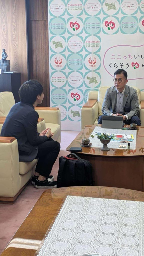 行橋市役所にて工藤市長を訪問し、意見交換を行いました 2025年10月27日(月)行橋市役所にて工藤市長を訪問し、今年度から市内全中学校におけるアントレプレナーシップ教育プログラムにて採択いただいた教材の実施状況や今後の更なるアントレプレナーシップ機運醸成のための取り組みについて意見交換を行いました。